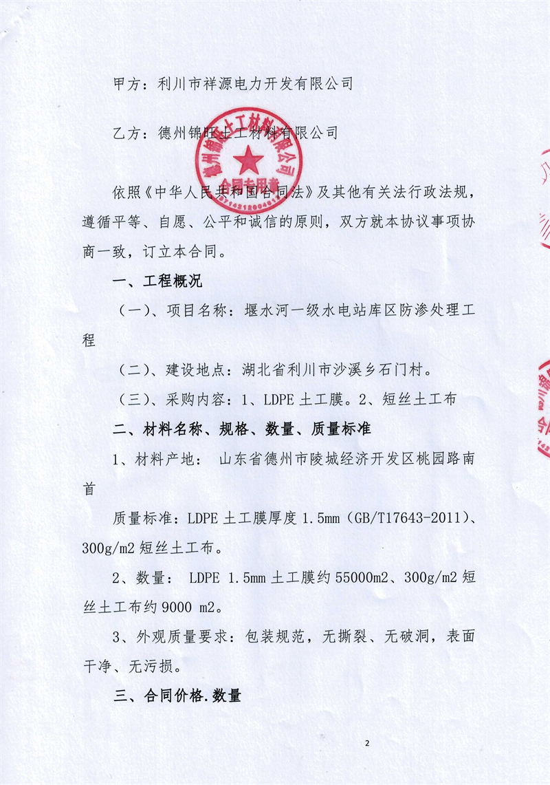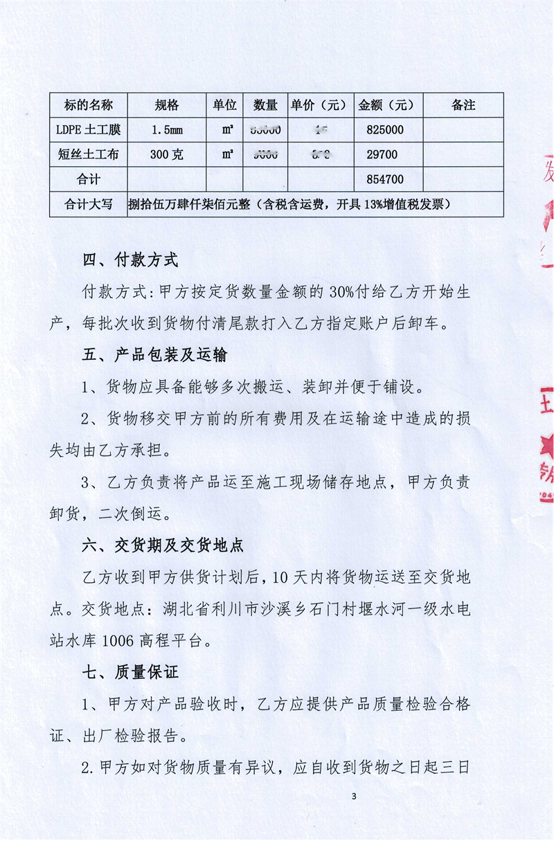 土工膜采购合同
